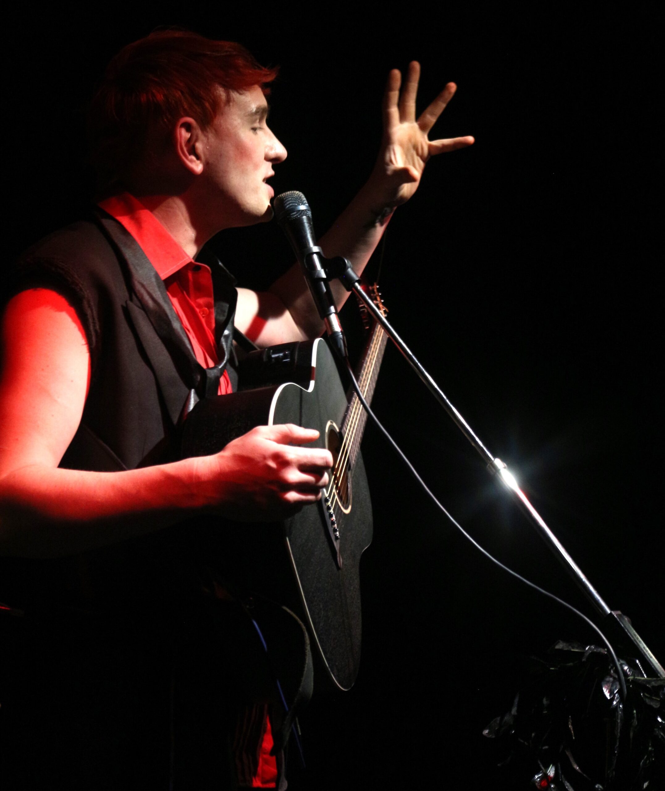 Wolf, der heute an der Südostspitze Englands lebt – „Ich kann nach Frankreich hinübersehen und bin auf den Cliffs im französischen Telefonnetz“ – bestreitet seine gegenwärtige Tour, die ihn nach den bereits absolvierten Stationen Amsterdam, Berlin, Warschau und Wien noch nach Prag, Südeuropa und heim ins UK bringen wird, gänzlich allein. Sogar die Bühnenkostüme – am zweiten der Wien-Auftritte ist das ein schwarz-roter Umhang, den er ab und zu dramatisch zurückwirft – hat er selbst entworfen und gefertigt.