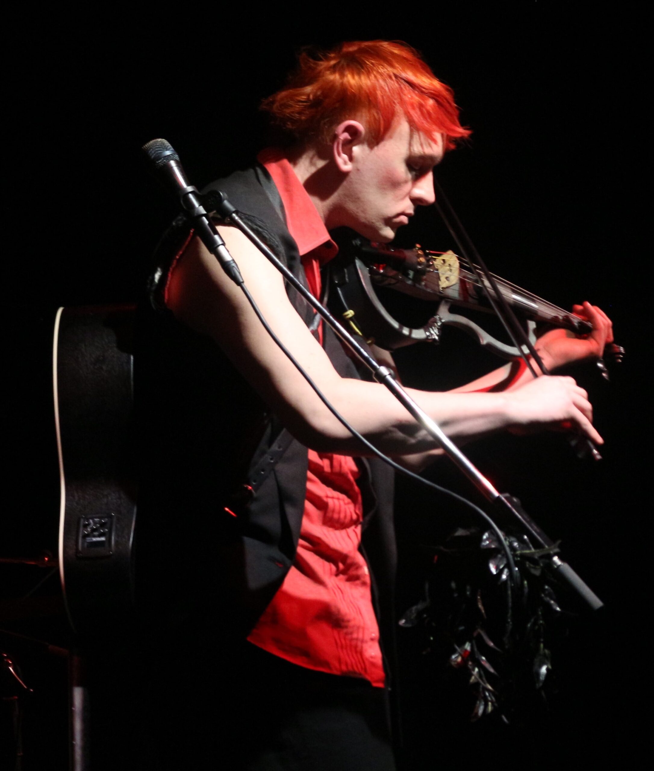 Diese Dankbarkeit wird auch an den zwei Abenden im Haus der Musik spürbar. Da gibt es keine Kluft, die zu überbrücken wäre. Die Kommunikation zwischen Publikum und dem Künstler, für den das Haus der Musik einen denkbar guten Rahmen abgibt, stimmt von Anfang an. Kaum einen Augenblick lang wird einem hier richtig bewusst, dass nur eine Person auf der Bühne steht. Das liegt zum einen an Wolfs mächtig-raumfüllender, theatralischer Stimme, die ein wenig der des ebenfalls dem großen Drama zugeneigten Divine- Comedy-Vorstands Neil Hannon ähnelt. Zum anderen aber, dass das Instrumentarium – Ukulele, Gitarre, Klavier und eine ziemlich eigenwillig geformte Geige – meist durch computergenerierte, oft und gerne auch dissonante und verzerrte Sounds unterfüttert wird. Was unsereins gern „Klanglandschaften“ nennt, bekommt hier fast eine räumlich Dimension.